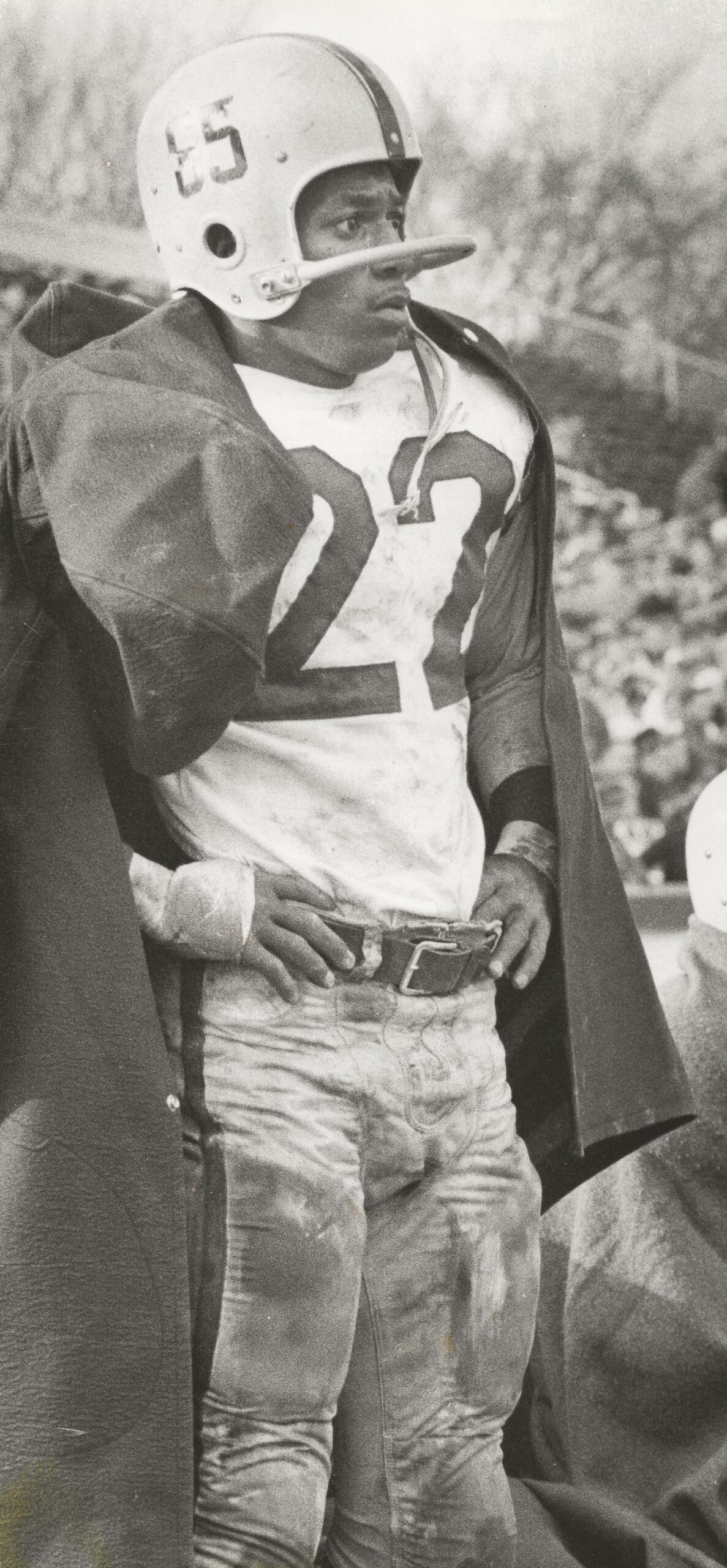 An automobile accident almost ended Leon’s career in 1954; however, he recovered and in 1955 enrolled at Arizona State University. In his freshman year he was voted Freshman of the Year in the Border Conference. He set an Arizona freshman record, of 694 yards and 10 touchdowns (average carry of 10.2 yards). He was injured as a sophomore yet scored five touchdowns. In his junior year, 1957, the Flint Flyer turned up the jets. Leon became the first football player from Flint to lead the nation in rushing, 1,151 yards, best rushing average of 9.62 per carry and lead the nation in scoring 96 points. He set Arizona State single rushing record gaining 243 yards in six carries against Hardin-Simmons.
